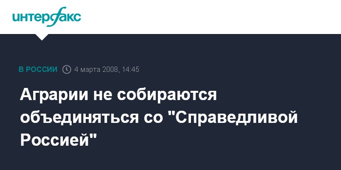 Москва. 4 марта. INTERFAX.RU - Аграрная партия России опровергает информацию о том, что она якобы собирается объединяться со "Справедливой Россией".