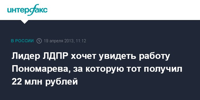 Лидер ЛДПР хочет увидеть работу Пономарева, за которую тот получил 22 млн рублей