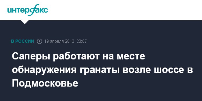 Москва. 19 апреля. INTERFAX.RU - Предмет, похожий на гранату времен Великой Отечественной войны, нашли недалеко от обочины Рогачевского шоссе в Подмосковье, сообщил журналистам в пятницу представитель регионального главка МВД.