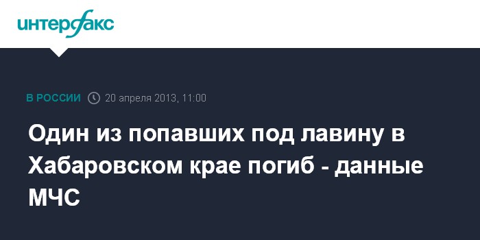 Один из попавших под лавину в Хабаровском крае погиб - данные МЧС