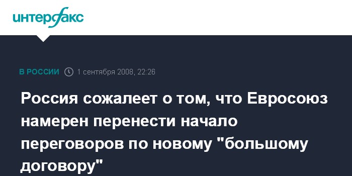 Москва. 1 сентября. ИНТЕРФАКС - В Москве выражают сожаление по поводу принятого Евросоюзом решения отложить переговоры по базовому соглашению с РФ.