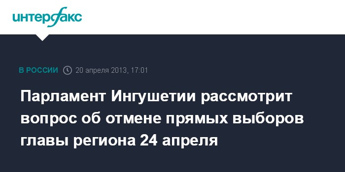 В Народном собрании республики агентству сообщили, что поправки в закон о выборах главы Ингушетии депутаты рассмотрят в первом чтении 24 апреля.