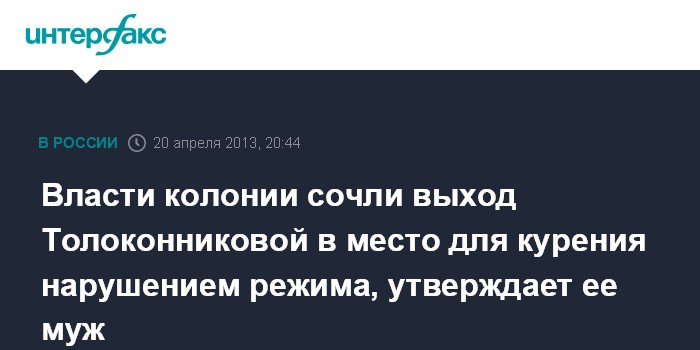 Власти колонии сочли выход Толоконниковой в место для курения нарушением режима, утверждает ее муж