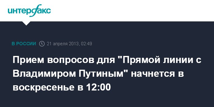 Прием вопросов для "Прямой линии с Владимиром Путиным" начнется в воскресенье в 12:00
