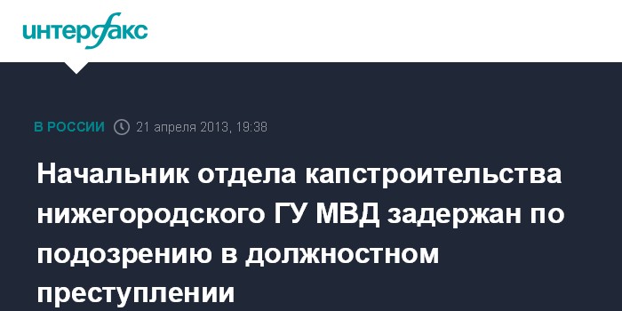 Начальник отдела капстроительства нижегородского ГУ МВД задержан по подозрению в должностном преступлении