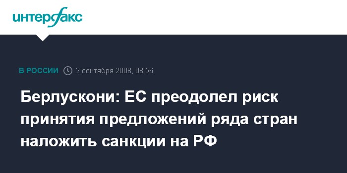 Берлускони: ЕС преодолел риск принятия предложений ряда стран наложить санкции на РФ
