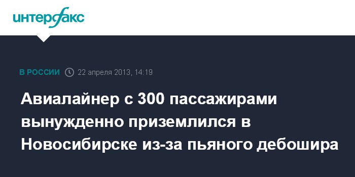 "Самолет "Боинг-767", летевший из Шереметьево в Шанхай, вынужденно приземлился в Новосибирске в 13:20 мск. Экипаж принял такое решение в связи с неадекватным поведением пьяного пассажира, устроившего дебош на борту лайнера и мешал продолжать полет", - отметил источник.