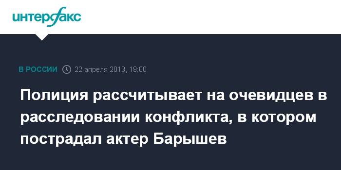 Полиция рассчитывает на очевидцев в расследовании конфликта, в котором пострадал актер Барышев