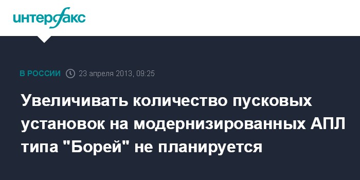 Увеличивать количество пусковых установок на модернизированных АПЛ типа "Борей" не планируется