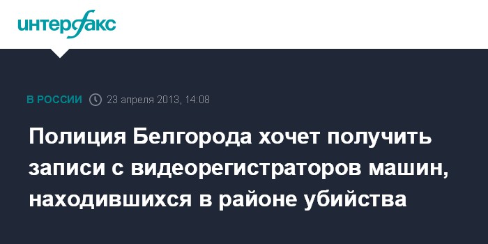 Москва. 23 апреля. INTERFAX.RU - Полиция обращается к белгородским водителям, имеющим видеорегистраторы и находившимся в понедельник в районе совершения массового убийства, предоставить следствию записи, сообщили "Интерфаксу" в пресс-службе управления МВД по Белогородской области.