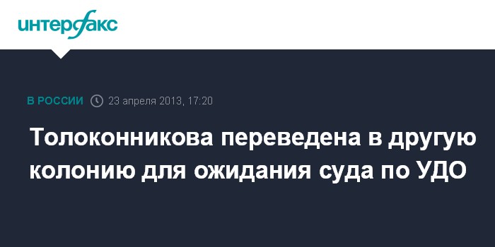 Ранее сообщалось, что Зубово-Полянский районный суд Мордовии назначил на 26 апреля на 10:00 мск рассмотрение ходатайства об УДО Толоконниковой.
