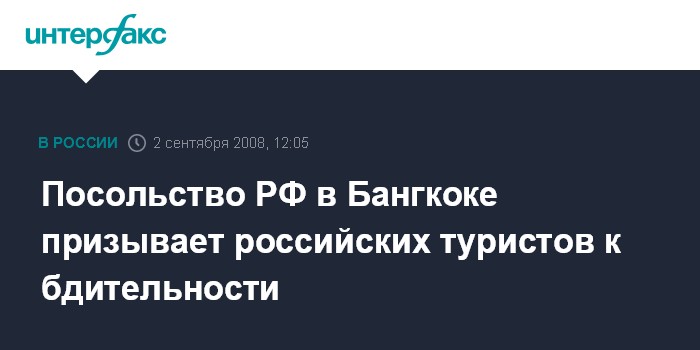 Москва. 2 сентября. INTERFAX.RU - Посольство России в Таиланде призвало граждан РФ, оказавшихся в этой стране, к осторожности.