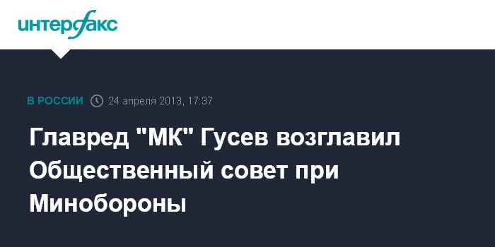 Главред "МК" Гусев возглавил Общественный совет при Минобороны