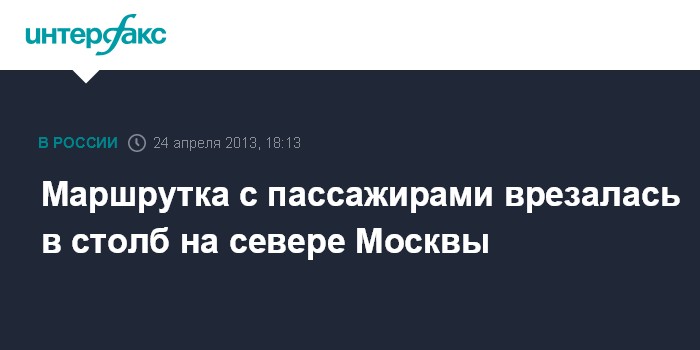 Москва. 24 апреля. INTERFAX.RU - Две пассажирки маршрутного такси госпитализированы после столкновения микроавтобуса со столбом на севере Москвы, сообщили в столичной Госавтоинспекции.