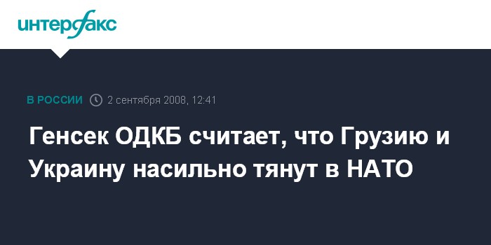 Ереван. 2 сентября. INTERFAX.RU - Генеральный секретарь Организации Договора о коллективной безопасности (ОДКБ) Николай Бордюжа считает, что НАТО насильно тянет Грузию и Украину в альянс.
