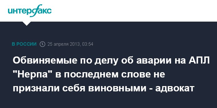 Владивосток. 25 апреля. ИНТЕРФАКС-ДАЛЬНИЙ ВОСТОК - Обвиняемые по делу об аварии на АПЛ "Нерпа" в Тихоокеанском флотском военном суде во Владивостоке в четверг в закрытом для СМИ режиме выступили перед присяжными с последним словом.