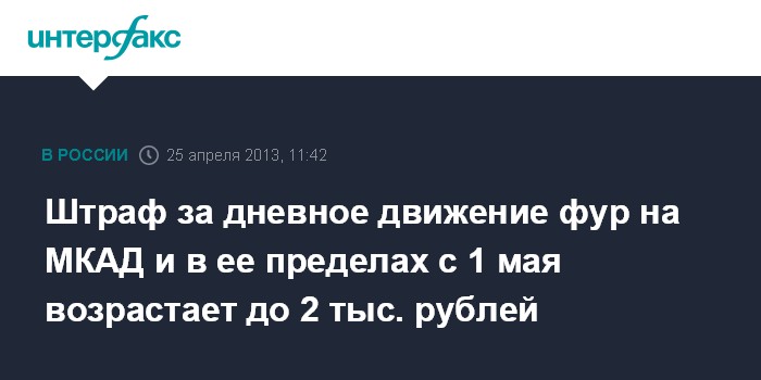 Штраф за дневное движение фур на МКАД и в ее пределах с 1 мая возрастает до 2 тыс. рублей