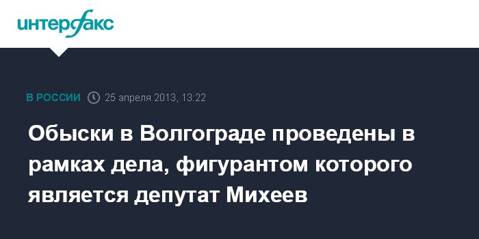 Сайт Следственного комитета сообщает, что обыски в Волгограде проведены в рамках дела о неправомерном завладении 14 объектами недвижимого имущества "Волгоградского моторостроительного завода" на сумму свыше 500 млн рублей и покушении на хищение путем мошенничества 2,1 млрд рублей у "Промсвязьбанка", подозреваемым по которому является депутат Госдумы О.Михеев.