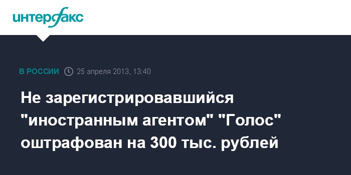 Не зарегистрировавшийся "иностранным агентом" "Голос" оштрафован на 300 тыс. рублей