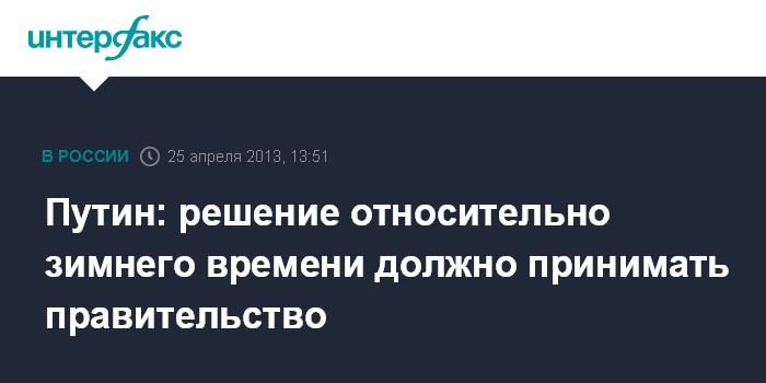 Вместе с тем президент подчеркнул, что не хотел бы, чтобы это выглядело так, что он уклоняется от решения вопроса перевода часовых стрелок. "Но в свое время Дмитрий Анатольевич (Медведев) принял это решение, правительство его исполнило. Оно находится в компетенции правительства, и правительство должно принять это решение", - подчеркнул Путин.