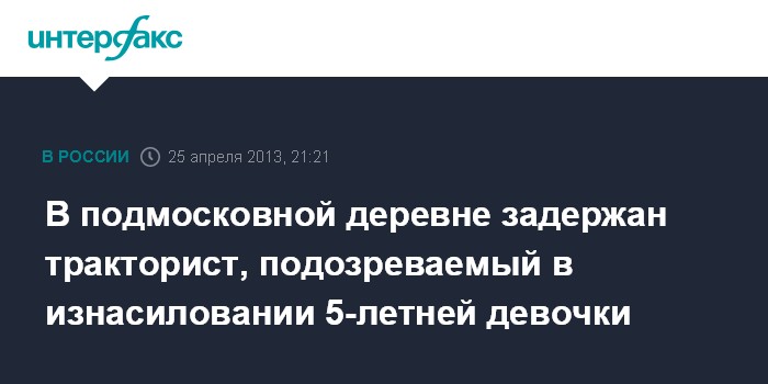 Как сообщается, в четверг днем в деревне Псарево в Ступинском районе пропала 5-летняя девочка. В полицию обратилась ее бабушка. В ходе обысков девочку нашли в коровнике на ферме. Выяснилось, что девочка изнасилована. Нашли подозреваемого, им оказался молодой человек 1989 года рождения, который в этой деревне работал трактористом.