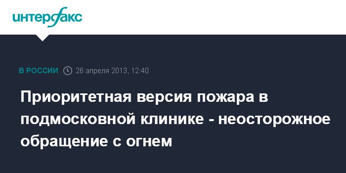 Приоритетная версия пожара в подмосковной клинике - неосторожное обращение с огнем
