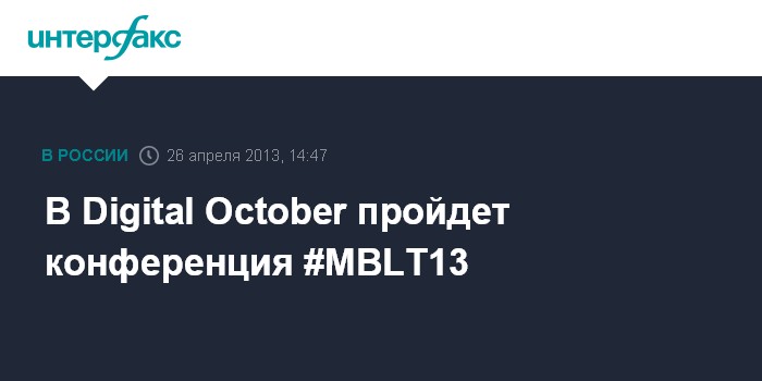 Москва. 25 апреля. INTERFAX.RU – Международная мобильная конференция #MBLT13 пройдет на московской площадке Digital October 15 мая. Главной темой мероприятия станет использование мобильных технологий в различных областях бизнеса.