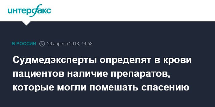 Судмедэксперты определят в крови пациентов наличие препаратов, которые могли помешать спасению
