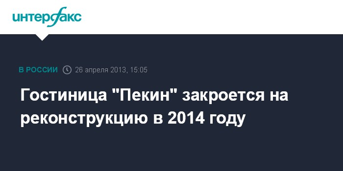 Гостиница "Пекин" закроется на реконструкцию в 2014 году