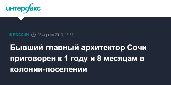 Бывший главный архитектор Сочи приговорен к 1 году и 8 месяцам в колонии-поселении