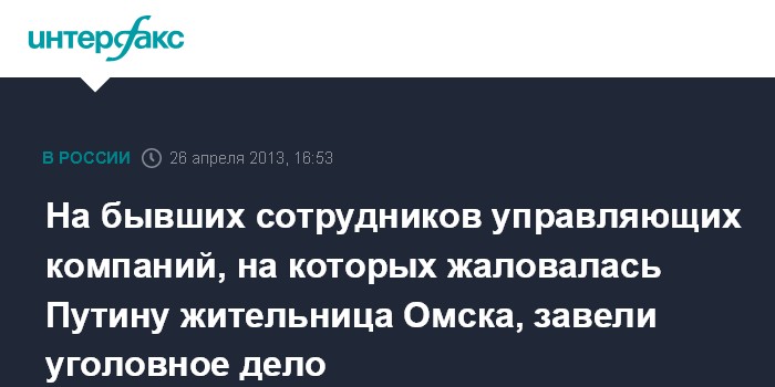 На бывших сотрудников управляющих компаний, на которых жаловалась Путину жительница Омска, завели уголовное дело
