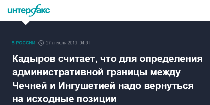 Глава Чечни утверждает, что Юнус-Бек Евкуров "в грубой форме нарушил федеральный закон и договоренности, достигнутые в Кремле о том, что границы между республиками будут определены, когда для этого появятся благоприятные условия".