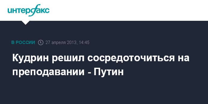 "Он (Кудрин) пожелал сосредоточиться на преподавательской деятельности. Это его личное право", - добавил глава государства, отвечая на вопрос, будет ли в дальнейшем А.Кудрину предложена работа на госслужбе.
