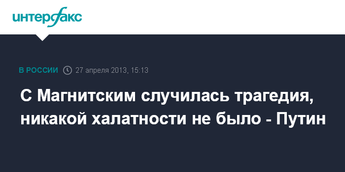 С Магнитским случилась трагедия, никакой халатности не было - Путин