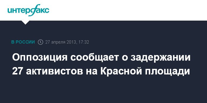 Москва. 27 апреля. INTERFAX.RU - Почти три десятка оппозиционеров и гражданских активистов были задержаны в субботу в Москве на Красной площади, сообщил "Интерфаксу" член бюро движения "Солидарность" Сергей Давидис. "Задержаны 27 человек, среди них есть активисты "Солидарности", в частности, Надежда Митюшкина и Денис Юдин", - сказал С.Давидис.