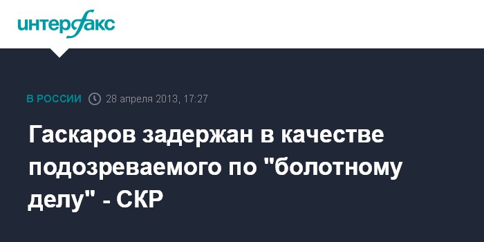 Москва. 28 апреля. INTERFAX.RU - Оппозиционер Алексей Гаскаров задержан в качестве подозреваемого по уголовному делу о массовых беспорядках в мае прошлого года на Болотной площади в Москве, сообщили в СКР. "В рамках уголовного дела о массовых беспорядках на Болотной площади задержан еще один подозреваемый - А.Гаскаров", - сказали в пресс-службе СКР "Интерфаксу" в воскресенье.