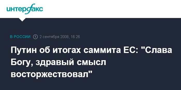 Ташкент. 2 сентября. INTERFAX.RU - Премьер-министр РФ Владимир Путин расценил как достаточно взвешенное заявление саммита Евросоюза, в котором была дана оценка действий России в Южной Осетии и Абхазии.