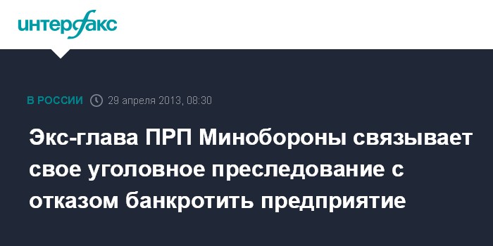 Экс-глава ПРП Минобороны связывает свое уголовное преследование с отказом банкротить предприятие