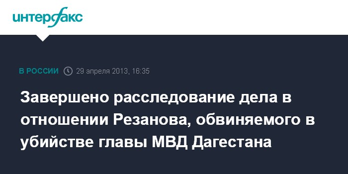 Завершено расследование дела в отношении Резанова, обвиняемого в убийстве главы МВД Дагестана