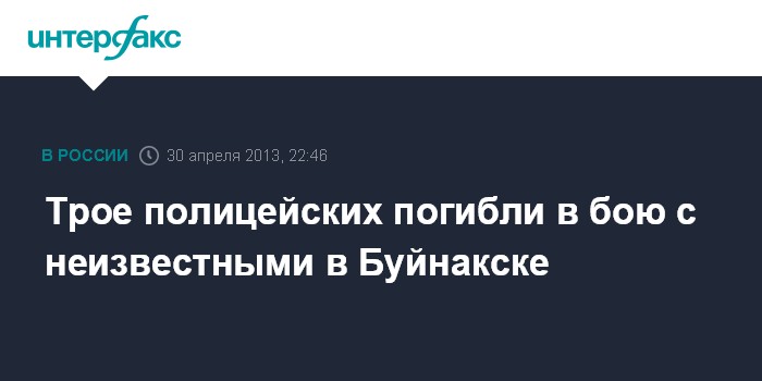Москва. 30 апреля. ИНТЕРФАКС - Трое сотрудников МВД погибли, один ранен в результате боестолкновения в дагестанском Буйнакске, сообщили "Интерфаксу" в пресс-центре МВД России.