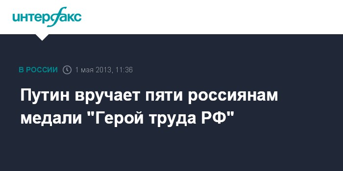 Санкт-Петербург. 1 мая. INTERFAX.RU - Президент РФ Владимир Путин в День весны и труда вручает в Константиновском дворце под Петербургом медали "Герой труда РФ" за выдающиеся достижения в государственной, общественной и хозяйственной деятельности. Золотую медаль Героя труда и грамоту о присвоении звания получают пять россиян.