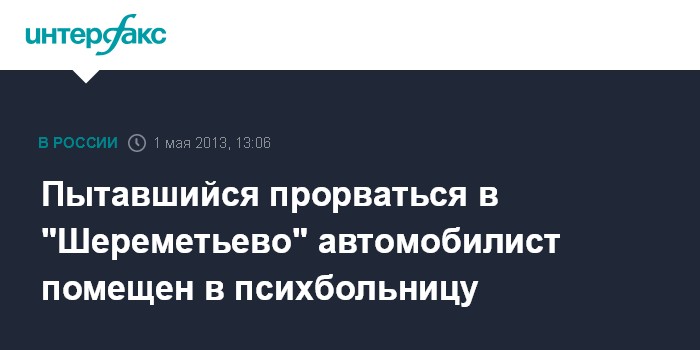 Пытавшийся прорваться в "Шереметьево" автомобилист помещен в психбольницу