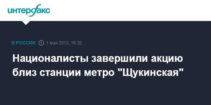 Шествие националистов с последующим митингом недалеко от станции метро "Щукинская" завершилось без происшествий. Участники свернули флаги и транспаранты и направляются в сторону входа в метро.
