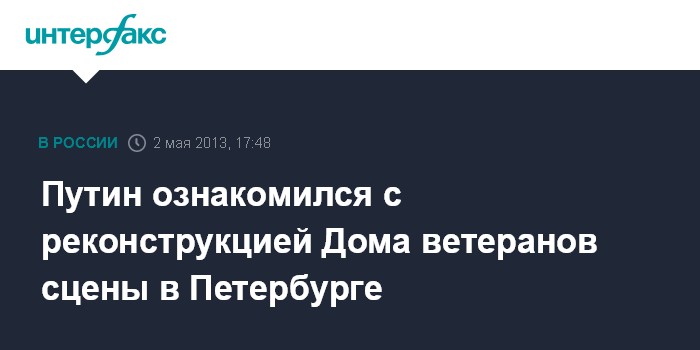 Санкт-Петербург. 2 мая. INTERFAX.RU - Президент России Владимир Путин посетил петербургский Дом ветеранов сцены имени Марии Савиной и ознакомился с ходом его реконструкции.