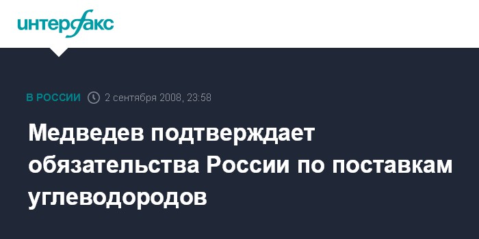 Медведев подтверждает обязательства России по поставкам углеводородов
