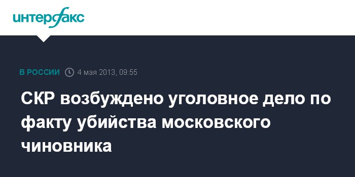 СКР возбуждено уголовное дело по факту убийства московского чиновника