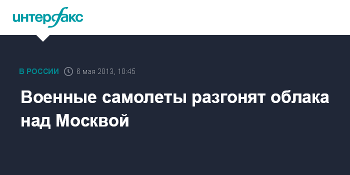 Москва. 6 мая. INTERFAX.RU - Самолеты ВВС России Ан-12 и Ан-24 распылят над московским регионом специальные реагенты, чтобы обеспечить чистое небо над столицей в День Победы, сообщает управление пресс-службы и информации Минобороны РФ.