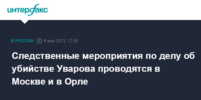 По ее словам, следственные мероприятия проводятся как в Москве, так и в Орле, в частности изымается служебная документация, представляющая интерес для следствия. "Круг подозреваемых пока не определен. По-прежнему рассматривается несколько версий преступления, одна из которых связана со служебной деятельностью Уварова", - сказала представитель следствия.