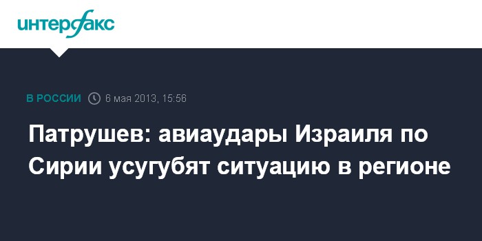 Патрушев: авиаудары Израиля по Сирии усугубят ситуацию в регионе