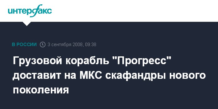 Байконур. 3 сентября. INTERFAX.RU - Три первых скафандра нового поколения "Орлан-МК" российского производства будут отправлены для экипажа международной космической станции (МКС) грузовым транспортным кораблем "Прогресс М-65", который стартует с Байконура в ближайшие дни.